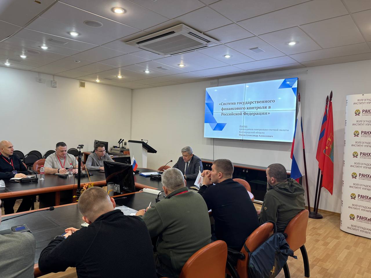 Председатель контрольно-счетной палаты Волгоградской области Александр Носов выступил на мероприятии с лекцией на тему: "Система государственного финансового контроля в Российской Федерации", рассказав об истории создания и этапах развития финансового контроля в государстве, а также о современных реалиях работы института контрольно-счетных органов на федеральном и региональном уровнях.